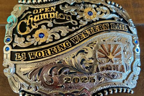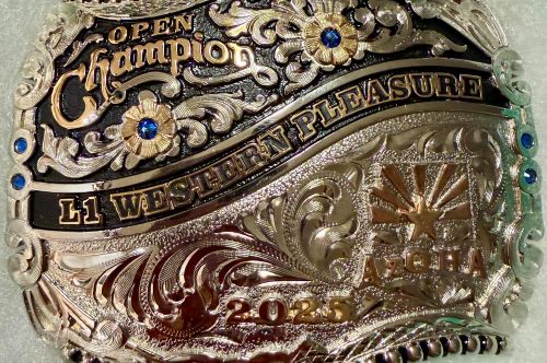 Fred was honored with a beautiful buckle for his service as AzQHA President over the last two years. He also won buckles as Champion in L1 Open Working Western Rail, L1 Open Ranch Trail, and L1 Open Western Pleasure, as well as a Reserve Champion headstall for Open Performance Halter Mares! Congratulations Fred! You are awesome! #RideOn!