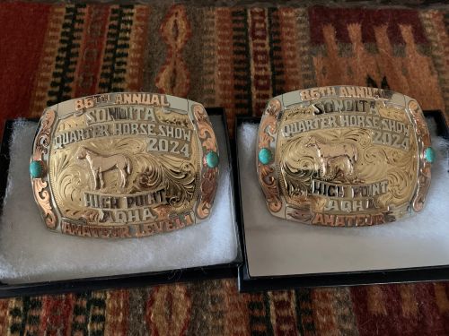 It took some time, but the High Point buckles from the Sonoita AQHA show have arrived! Congratulations again, Sherry and Fred! #RideOn!